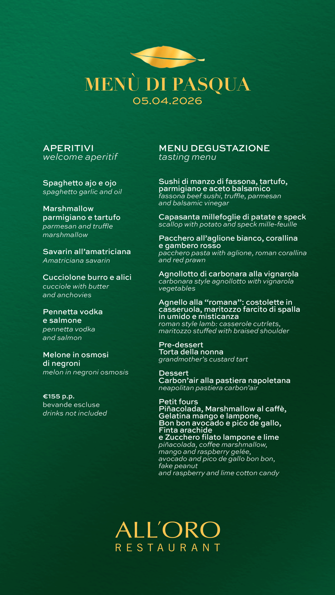 Via Giuseppe Pisanelli 25, Roma | +39 06 979 96 907 | info@ristorantealloro.it