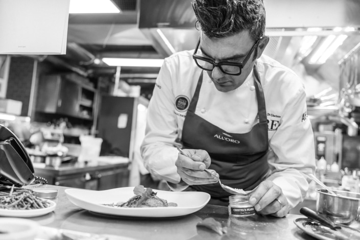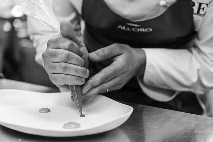 All’Oro Restaurant has always been characterized by its traditional and contemporary cooking philosophy, a creative kitchen rooted in the traditional tastes where all great classics of the Italian cuisine are re- interpreted in a contemporary way by the chef. That’s the reason why Riccardo Di Giacinto always says “I usually step back to move forward” that means one step back in the tradition.